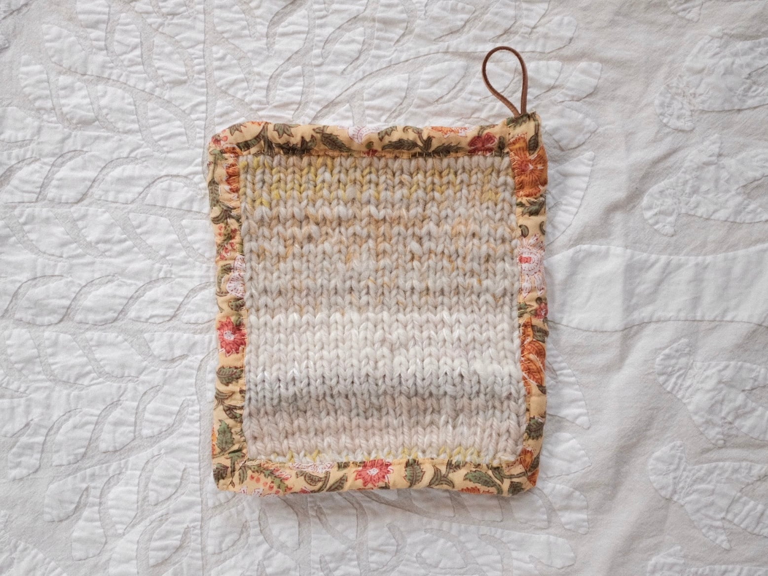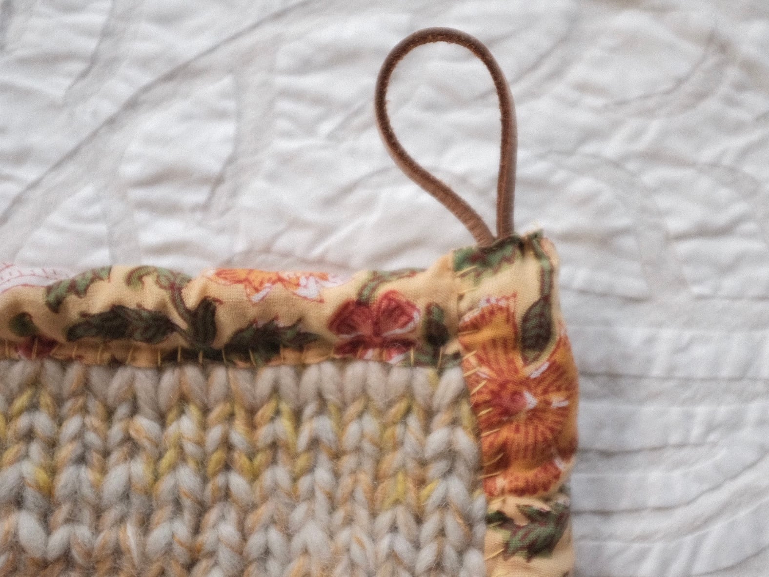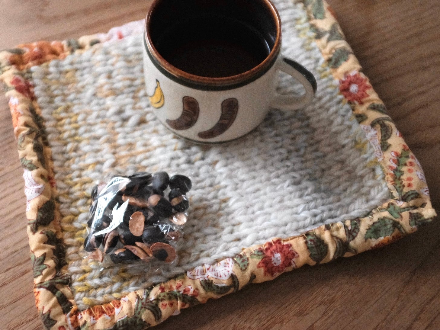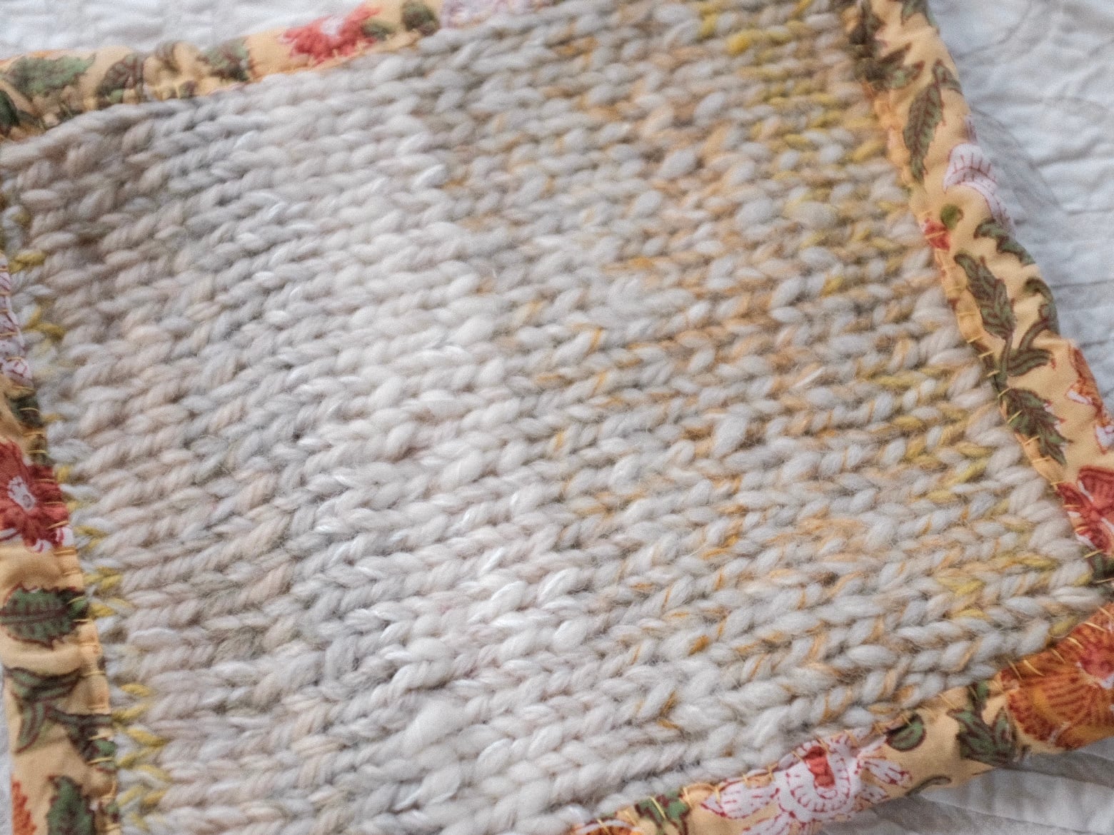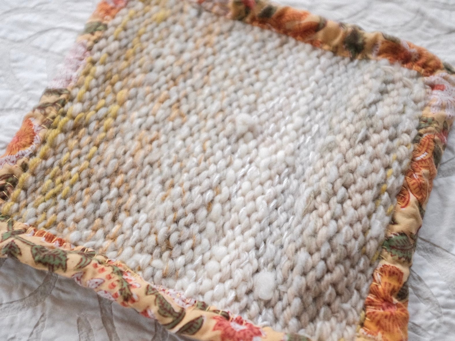 編み、まわりをインドの生地で包みました。